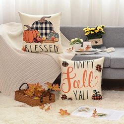 Nuova copertura del cuscino di lino del ringraziamento autunno bianco e nero plaid di zucca truck nano copricuscino lombare copricuscino del divano
